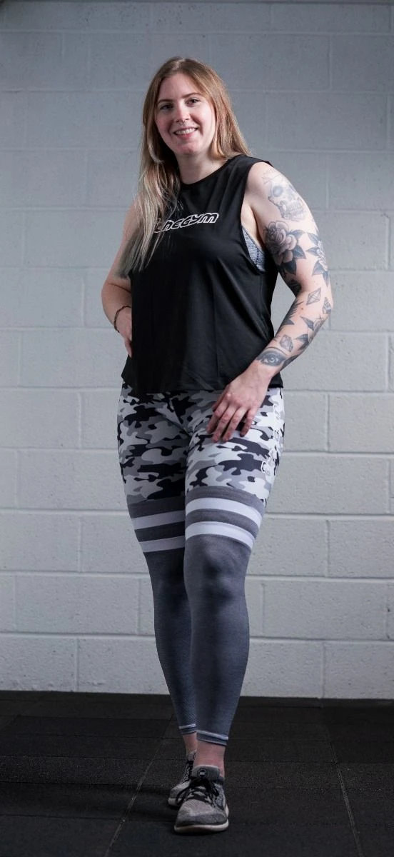 The @thegym Grey-Camo leggings are designed for comfort, whether wearing them casually or during a workout. They are opaque, making them “Squat Proof”, and giving you the confidence wearing these stylish leggings. The @thegym leggings are made up from 73% Polyester 27% Spandex. the High-Waist offers a flattering look, while being functional.