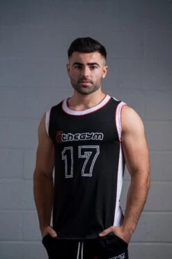 The @theGym Origin Baller Vest top is a basic, yet functional training top for the gym or hanging out. Shown here in Black with White/Red contrast, it’s available in several colour options. A popular choice for both men and women. For women, the vest looks great on top of a sports bra. For guys, just the vest, by itself.