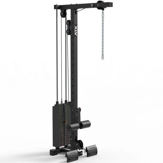 This Lat pull down / Low row attachment allows you to increase the versatility of your power rackand half rack. This weight stack option comes with 125kg. The numbered weight plates enable the desired weight to be set at lightning speed with the integrated magnetic plug pin. A variety of pulling exercises can be carried out via the upper and lower pulley without modification. The adjustable knee pad and footrests ensure safe positioning when pulling on the lat or seated rowing. For use with ATX power racks PRX-750, PRX-770, HRX-720, HRX-750, MPX-730*.