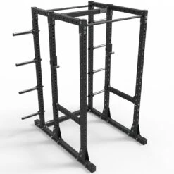 Each has two pairs of J-hooks, the lower as a rule for the bench press, and the top J-hooks for for squats.