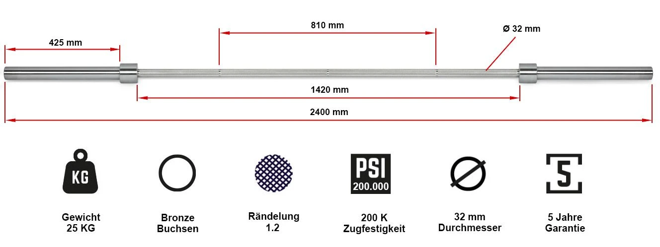 - Precision knurling – RGE 1.2 mm. NOTE: Limited stock special offer bars are medium-depth knurl!