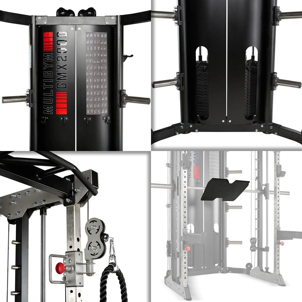 The GMX-2000 multigym features 2 x 90kg weight stacks, which are on a 1:1 ratio (a 2:1 ration is typical for this kind of machine!) giving you a lot of weight to train with! This multigym also features a smith machine and can be used as a half rack, so you have a variety of options to choose from and utilise within your training regime.