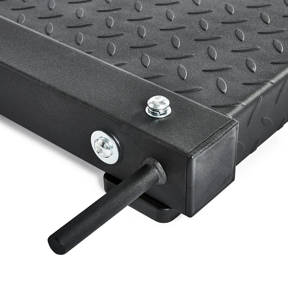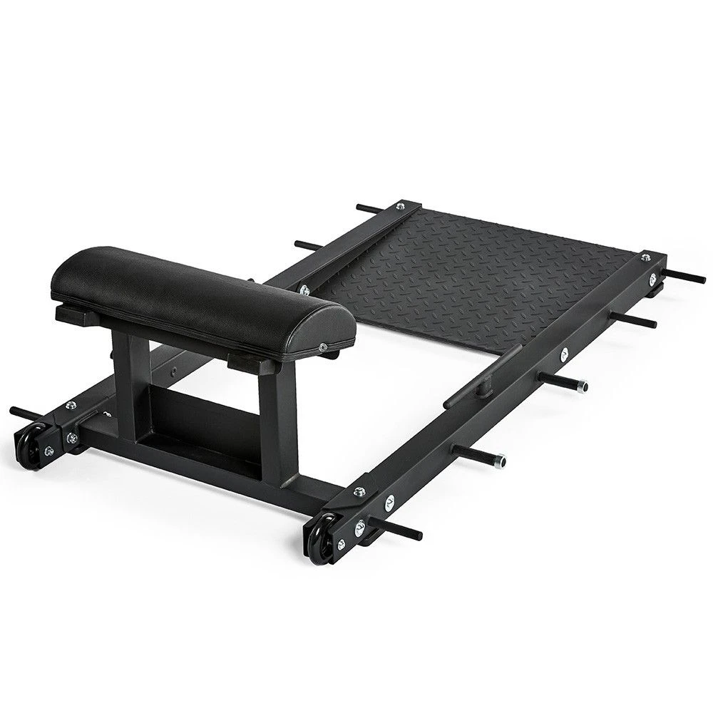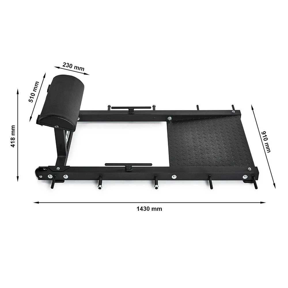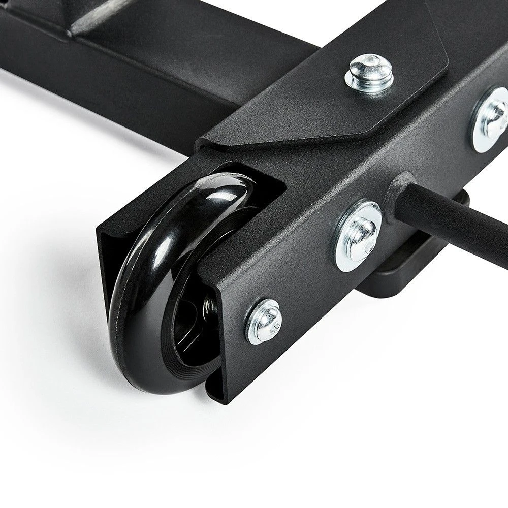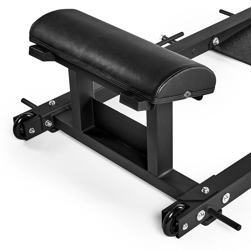 The hip thrust bench is a compact speciality bench for training glutes, legs and lower back. The angled foot plate and pad gives the best position for exercising and makes it easier and safer then using a gym bench. The band pegs give you the option to chose the desired resistance with or with out a a bar and plates. The roller band pegs give resistance bands a smooth friction free movement. With integrated rollers for easy repositioning. This bench has a load capacity of 250kg.