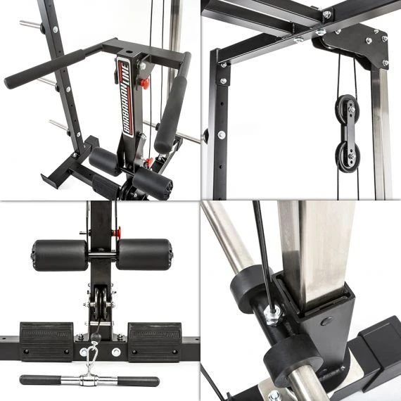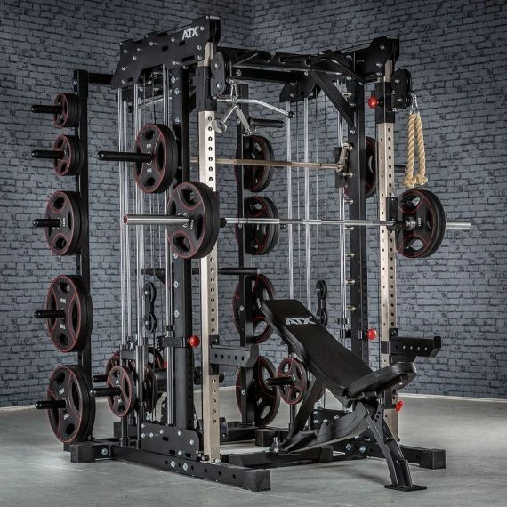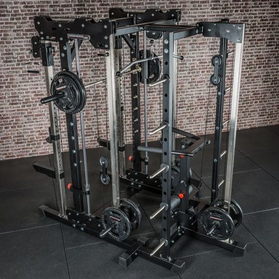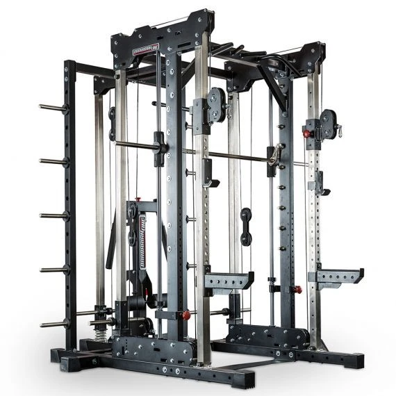 With a relatively small footprint and only 230cm in height, the ATX INVADER multigym is the ideal set-up for PT and garage gyms. Pretty uncompromising, the machine benefits from the excellent Barbarian Line build-quality and multiple stations in one…including a dual adjustable pulley, pull-up bars, smith machine and half rack…this “extreme” version adds to this a lat pulldown and low row, weight plates storage and a foldable dip station.