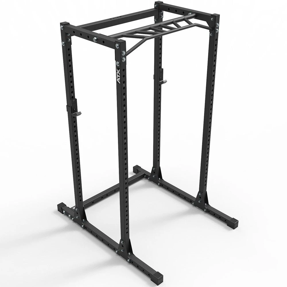 The ATX ® Power Rack PRX-650 is a very stable and heavy-duty power rack. Made of 60 x 60 x 3 mm thick section steel, this rack can be loaded up to 1,000 kg! The high base rack weight of 104 kg underlines the massive construction of this power racks. Each individual vertical load post is vertically and horizontally screwed 6-fold, thereby, also under the heaviest load is the power rack PRX-650 completely stable. The generous dimensions of 121 cm width and 156 cm depth provides a comfortable internal working area and provides maximum stability, alongside a height of 215 cm providing the ATX ® Power rack PRX-650 with good headroom for chins and our lat pulldown attachment (the latter being an optional extra). ATX quality – heavy loads and excellent in design and functionality – Certified according to EN 20957 I.II.IV – S commercial standards. Equipped as standard with two heavy-duty J-Hooks. This model has the heavy load box-section safeties, but, we can swap these out for sabre-style, should you prefer.