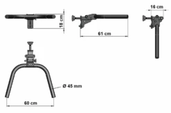 - *Suitable for all rig/rack posts with a tube cross section of 50 – 70 mm – center hole Ø 21 mm