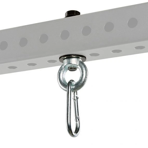 The ATX eyelet is used to hang up climbing ropes, gymnastics rings, suspension trainers, tubes, resistance bands, handles and any other accessories. Suitable for all ATX 4.0 rigs and all ATX 800 Series Power Racks, the eyelet is simply securely attached to the cross members or the posts of the rigs and racks using an M20 screw.