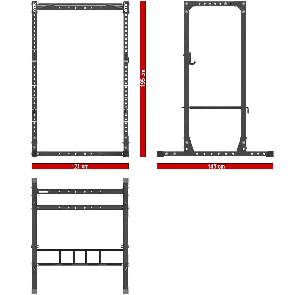 The ATX Power Rack PRX-610 offers a high finish, maximum safety and perfect functionality. This rack has a comfortable inner size that offers enough space during your training and the extra low height of 195 cm is perfect for low spaces. The high load capacity of 650 kg underlines the robust construction of the 60 x 60 x 2 mm steel frame and the rack is equipped with J-hooks and pin-pipe safeties that make safe training possible. The J-hooks are provided with a 10 mm thick rubber layer for protecting the barbell and reducing noise. The uprights with holes at 30 different heights are provided with markings on the inside and outside, so that accessories can be adjusted quickly and easily. This power rack is manufactured to the highest quality standards and is certified to EN 20957 I.II.IV – H for home use.