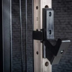 - Includes multi-angle pull-up bar and plug-in dip attachment.