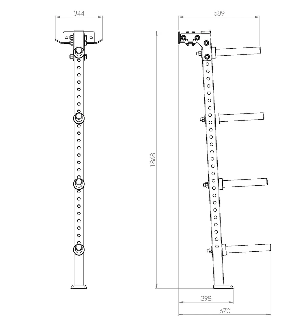 - Suitable for 50 mm olympic weight plates up to an outside diameter of 450 mm.