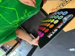 This sticker set consists of 48 round markers in six striking colours. The markers are ideal for marking specific holes of your rack, for example to indicate the positions for bench press, squats and shoulder press. Unlike regular office stickers, these special vinyl stickers have a strong adhesive layer that even sticks to rough powder coatings for a long time.