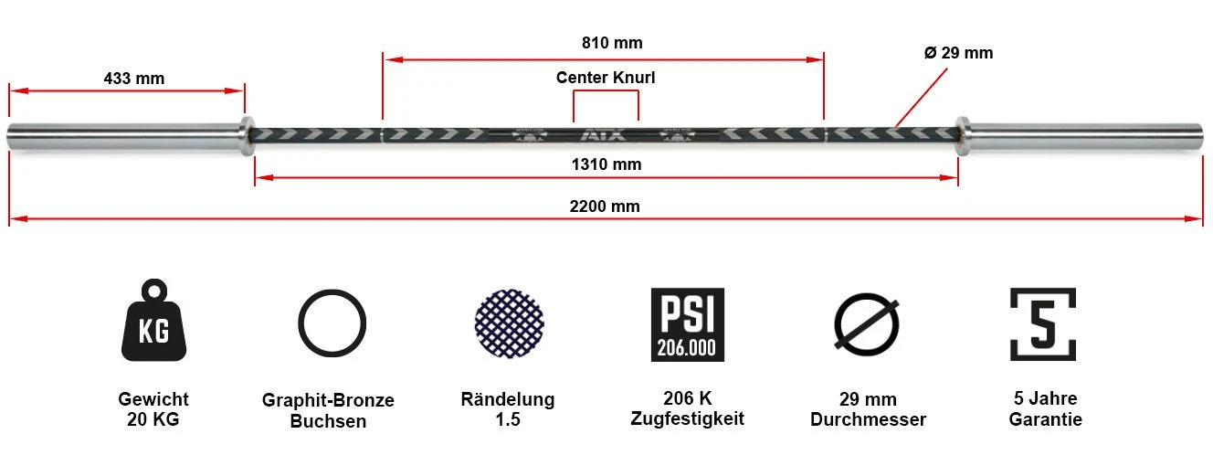 - The bar has a black oxide finish and hard-chrome sleeves.
