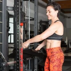 Attachment: The footplate pins through the smith bar and is removable. The handles and storage shelf are to be permanently attached to the gym.