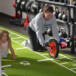The centre-piece has no joins, ensuring a solid base without hazard. The rubber tiles either side are intentionally grippy to avoid movement of the pads, upon impact. NB: ATX Drop Pads are recommended alongside our Event Log Lift Platform.
